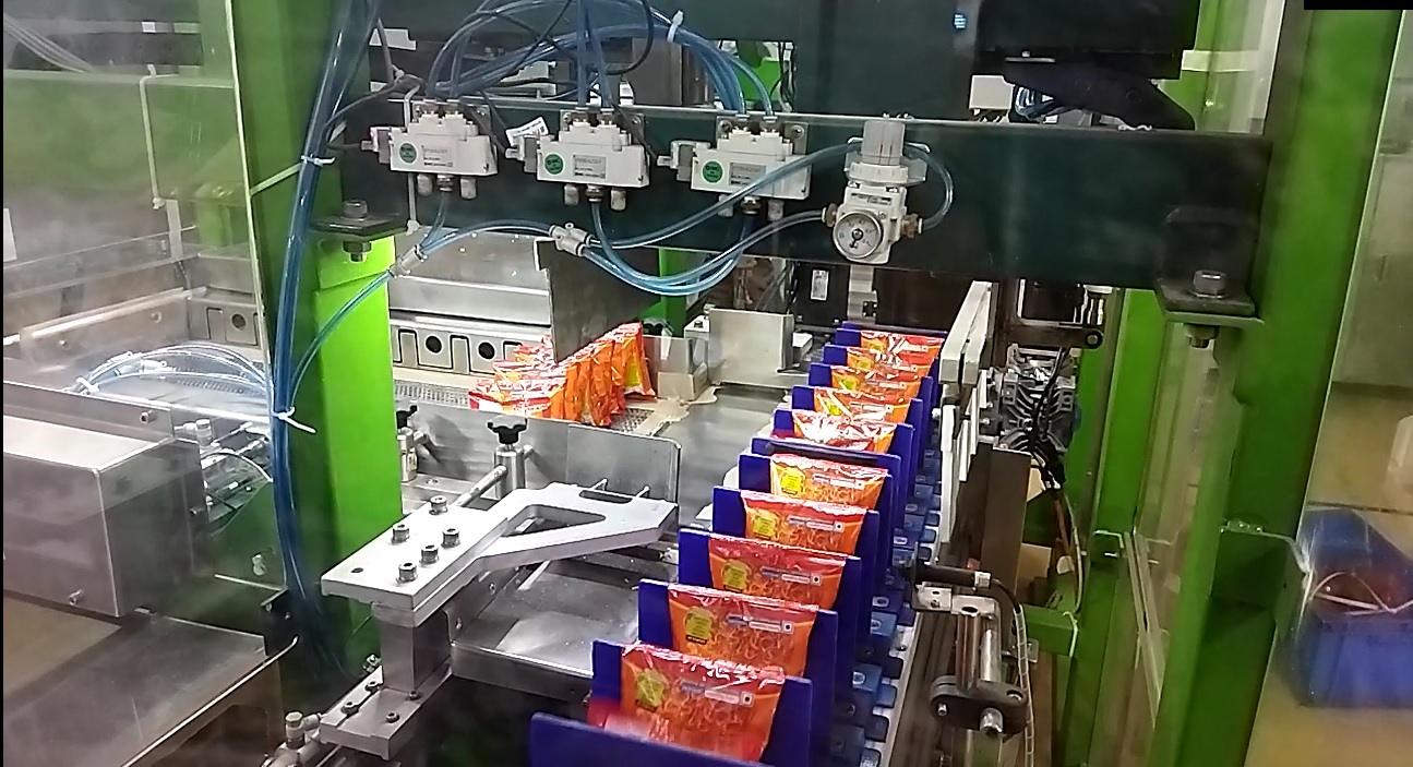 This is our new Auto Case Packer Machine for Noodles Line. It can handle around 250 Cakes per minute.